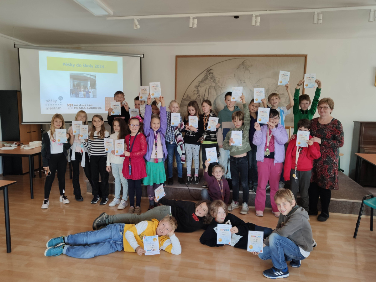 Děkujeme za spolupráci paní ředitelce a pedagogům a za organizační podporu spolku Pěšky městem, magistrátu hl. m. Prahy a SRPŠ. Akci koordinovaly paní učitelka Dalia Peterová a suchdolská zastupitelka Gabriela Lněničková.
